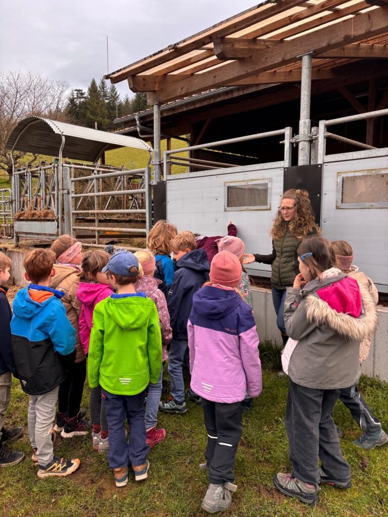 Sehr interessant war auch das Thema Haltung von Schweinen. Die Klasse durfte sehen, wie die Tiere auf dem Hof leben, was sie fressen und wie wichtig ausreichend Platz, frisches Wasser und gutes Futter sind, damit es den Schweinen gut geht.