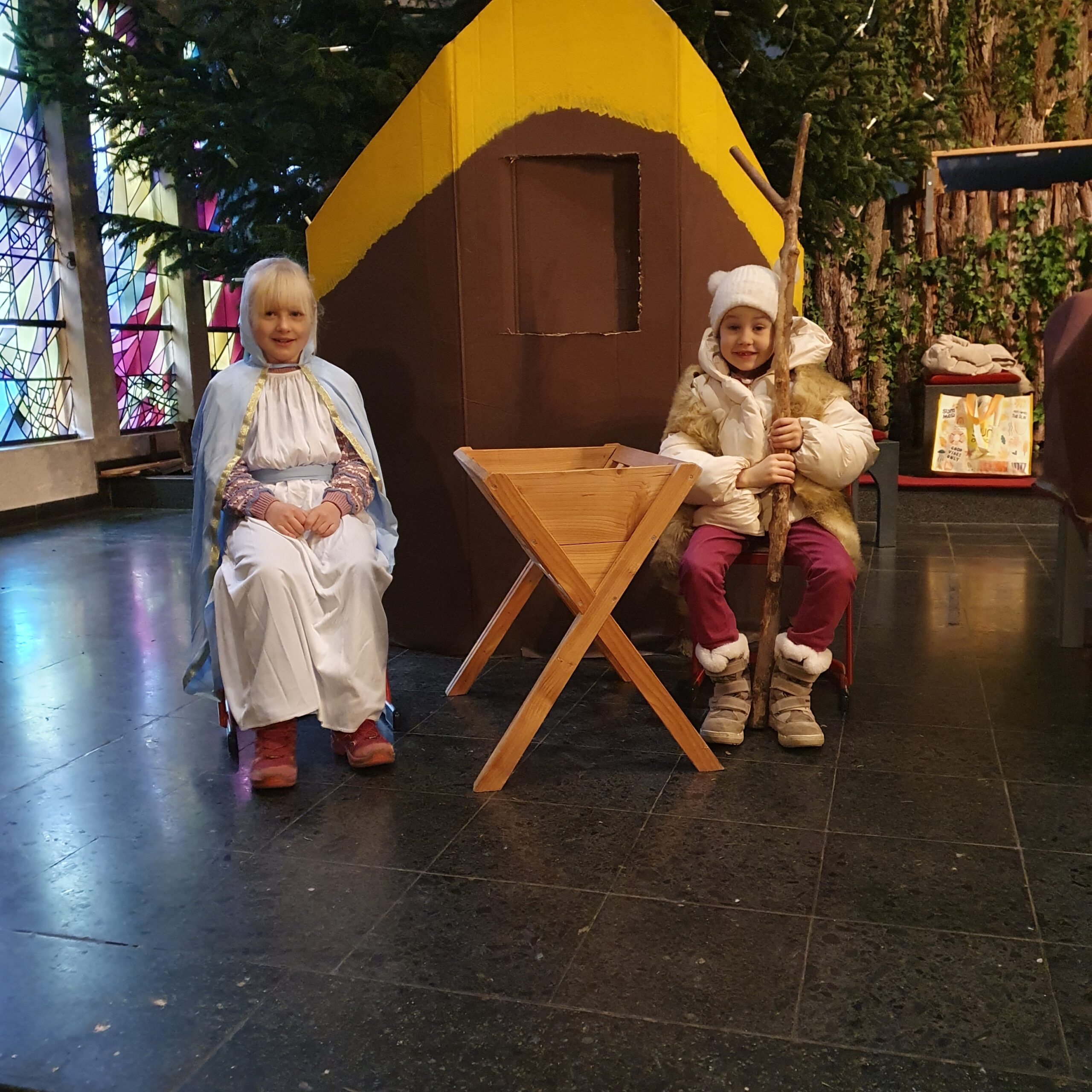 Schülerinnen und Schüler der Klassen 2 und 3 führten mit viel Fleiß und großem Engagement ein wunderschönes Krippenspiel auf, das Frau Hirt mit den Kindern einstudiert hatte. Dieses wurde nicht nur im Rahmen des Schulgottesdienstes präsentiert, sondern auch an Heilig Abend bei der Krippenfeier der Pfarrgemeinde St. Georg.