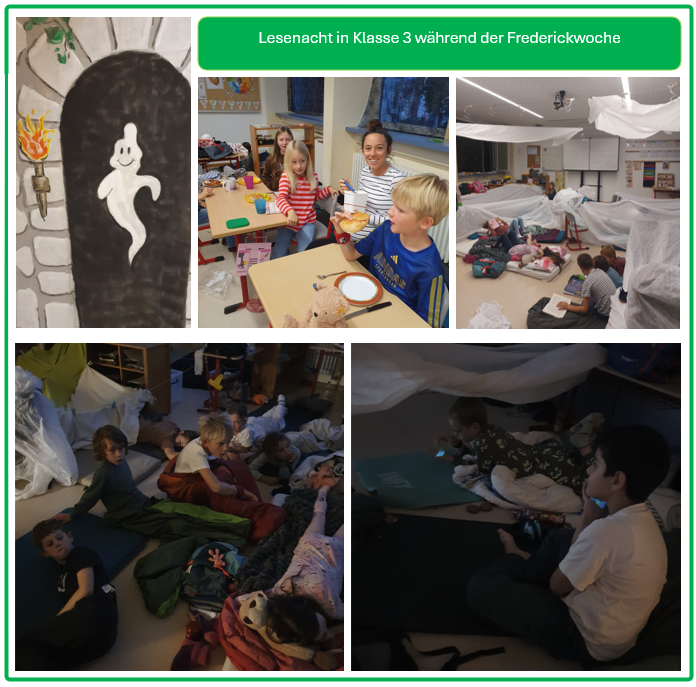 Am nächsten Morgen gab es ein ausgiebiges Frühstück, bei dem sich alle stärkten. Zur Freude aller kam Frau Plersch als Überraschungsgast dazu. Zum Abschluss präsentierten wir noch etwas aus der Frederickwoche. Danach starteten wir müde, aber glücklich, in die Herbstferien.
