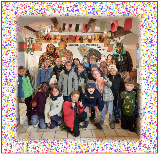 In Begleitung ihrer Lehrkräfte machten sie sich gespannt auf den Weg und wurden dort herzlich von einer Knerbli-Hexe und einem Eichel-Spättle empfangen.